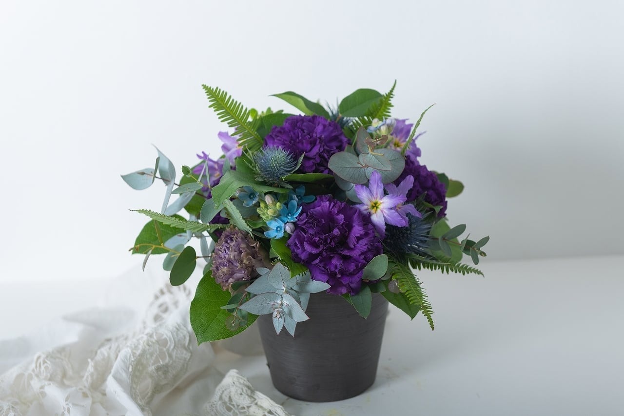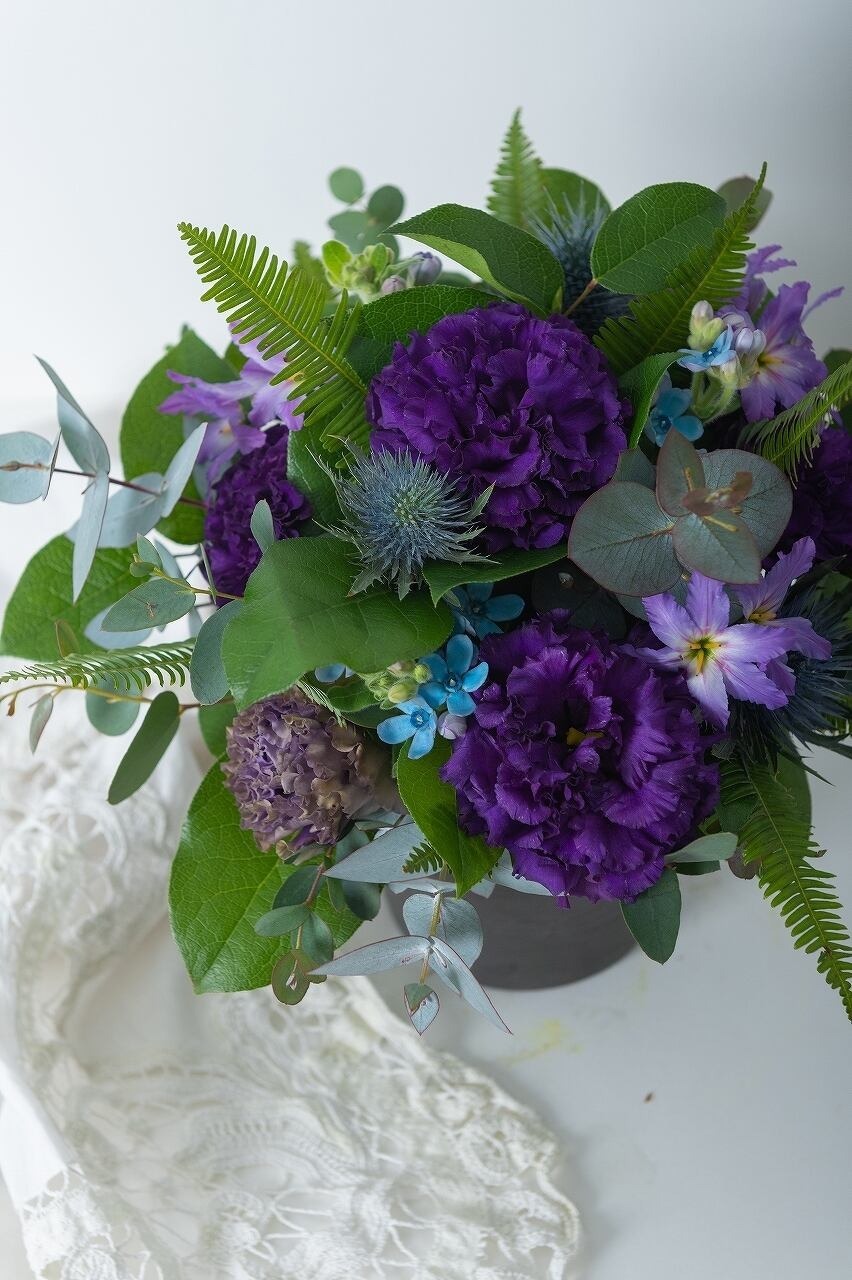 フローリストが作る季節のおまかせアレンジメント/パープル・ブルー/S